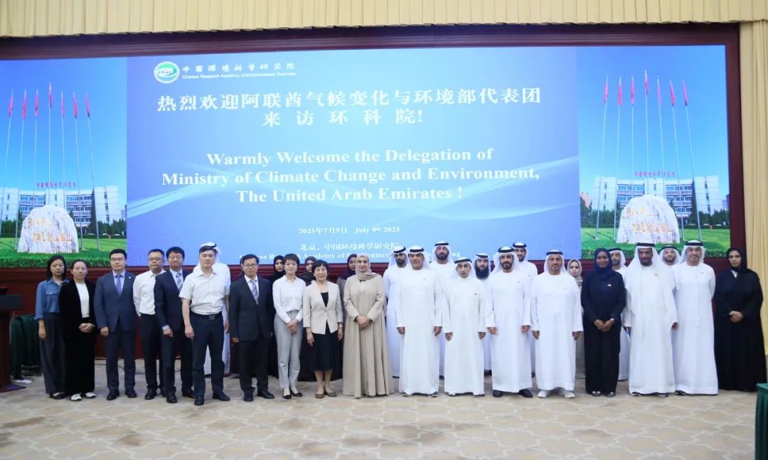 On July 9, 2025, the delegation of the Ministry of Climate Change and Environment of the United Arab Emirates(UAE), headed by Minister Amna bint Abdullah Al Dahak, visited the Chinese Research Academy of Environmental Sciences (CRAES) to explore scientific cooperation opportunities. Ms. Liu Chunyan, Secretary of the Party Committee, CRAES welcomed the delegation, and Ms. Cui Dandan, Level-II Inspector from the Department of International Cooperation, Ministry of Ecology and Environment (MEE) attended the meeting. Vice President Chen Sheng presided over the meeting.