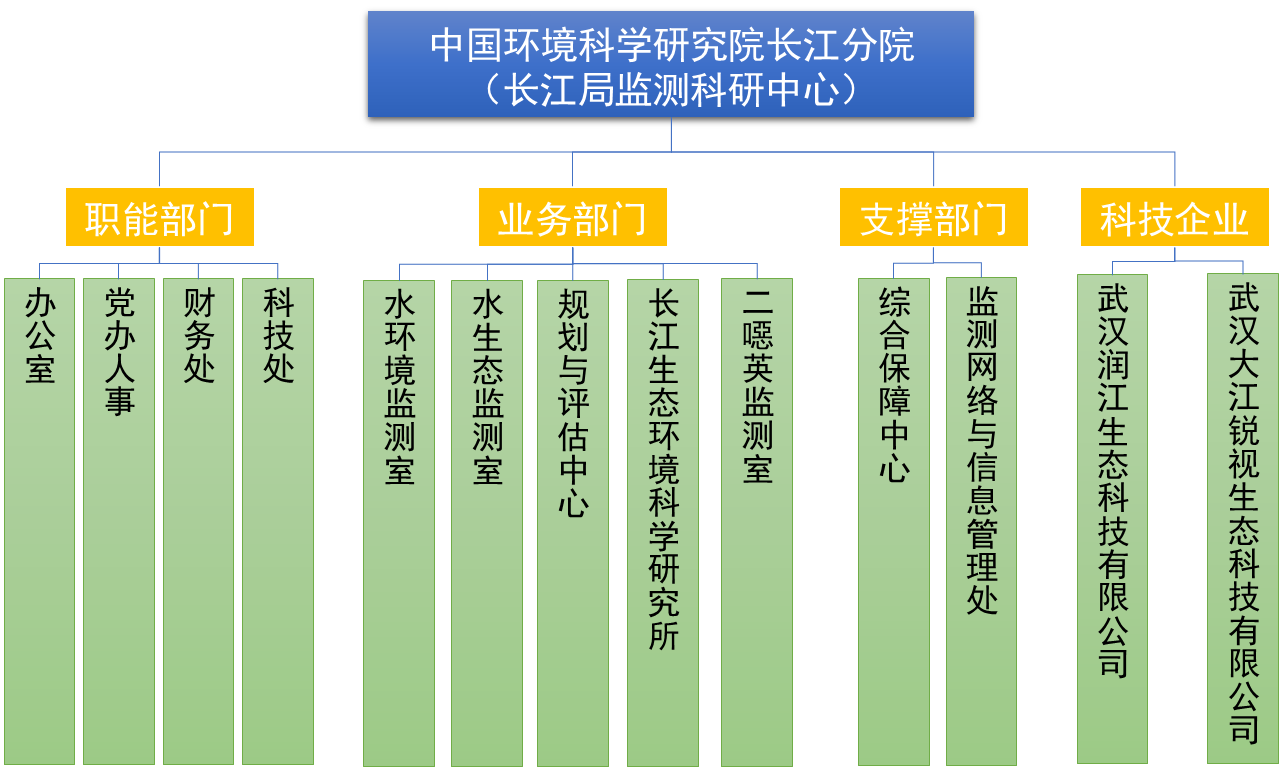 長(cháng)江分院下設4個(gè)職能部門(mén)、5個(gè)業(yè)務(wù)部門(mén)、2個(gè)支撐部門(mén)、2家公司。