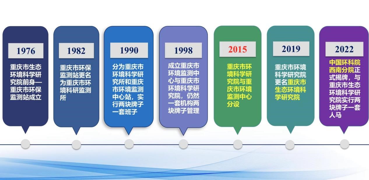 重慶市生態(tài)環(huán)境科學(xué)研究院成立于1976年,前身是重慶市環(huán)保監測站,1990年掛牌重慶市環(huán)境科學(xué)研究所,2015年分設獨立成院,2022年4月,中國環(huán)境科學(xué)研究院西南分院依托重慶市生態(tài)環(huán)境科學(xué)研究院掛牌成立。