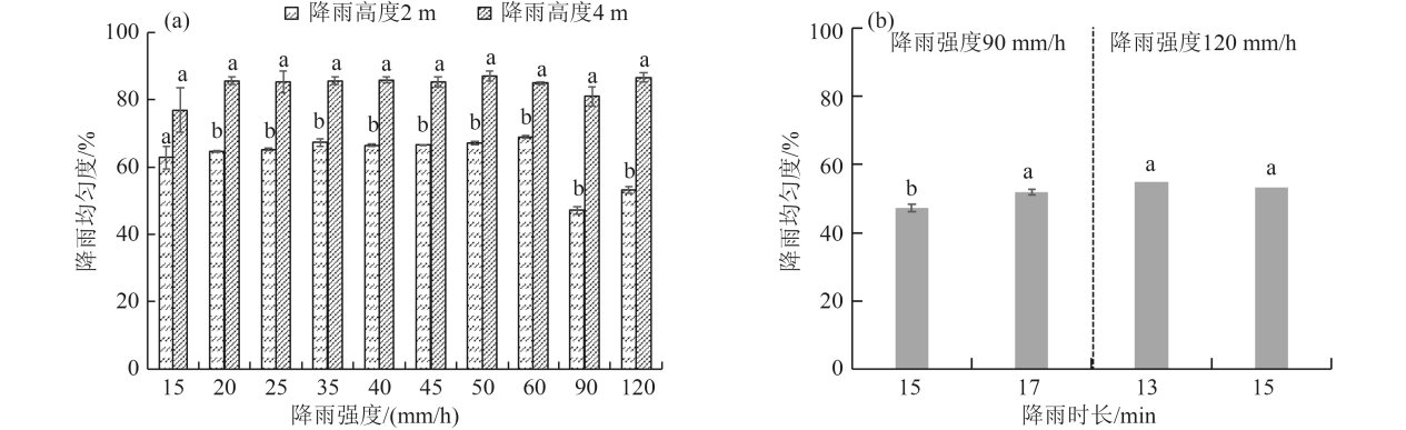圖3 不同降雨強度和降雨時(shí)長(cháng)下均勻度變化情況