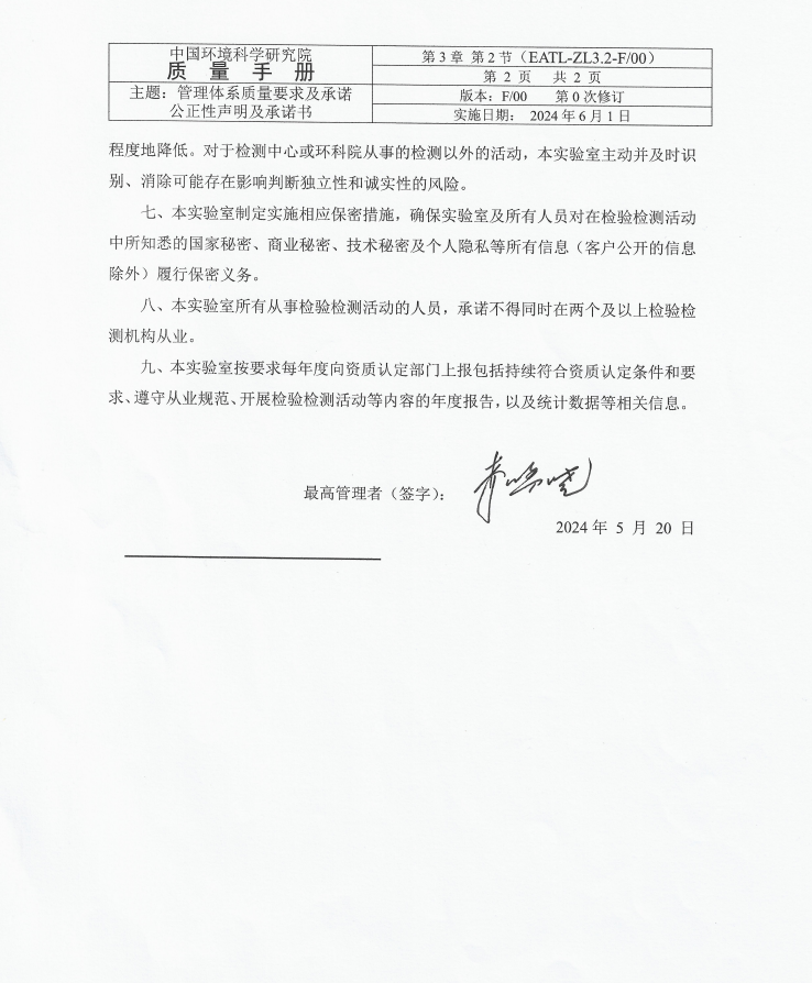 首頁(yè) > 走進(jìn)環(huán)科院 > 組織機構 > 環(huán)境檢測與實(shí)驗中心 > 公正性聲明及承諾書(shū)